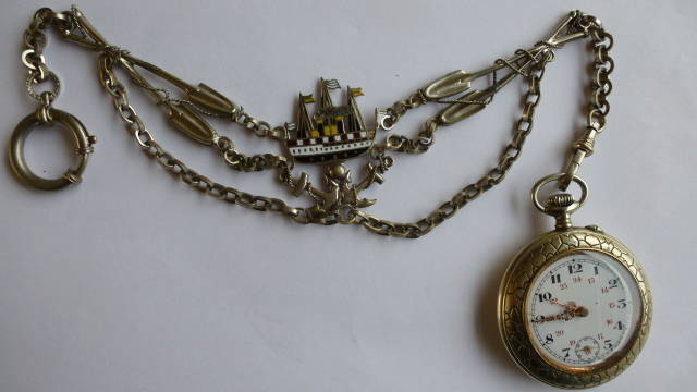 59. Swiss pocket watch and chain, ca. 1900.