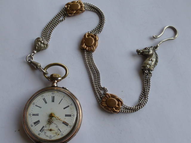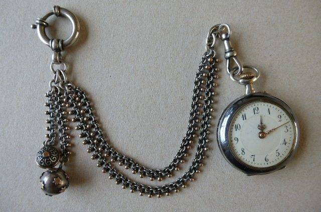 112. Chatelaine and Silver pocket Watch, ca. 1900.