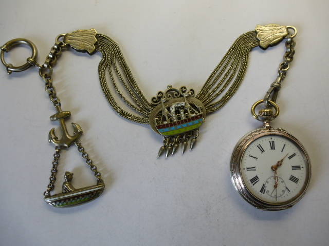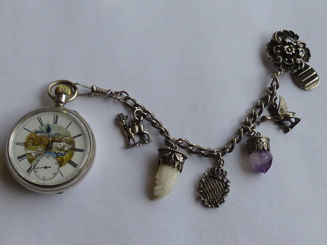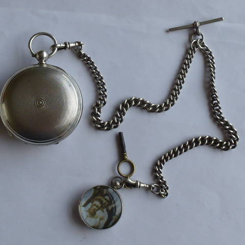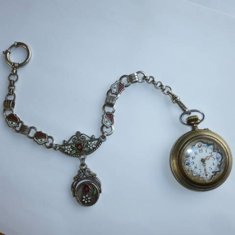 127. Silver pocket watch with miniature painting at the dial ca. 1915.
