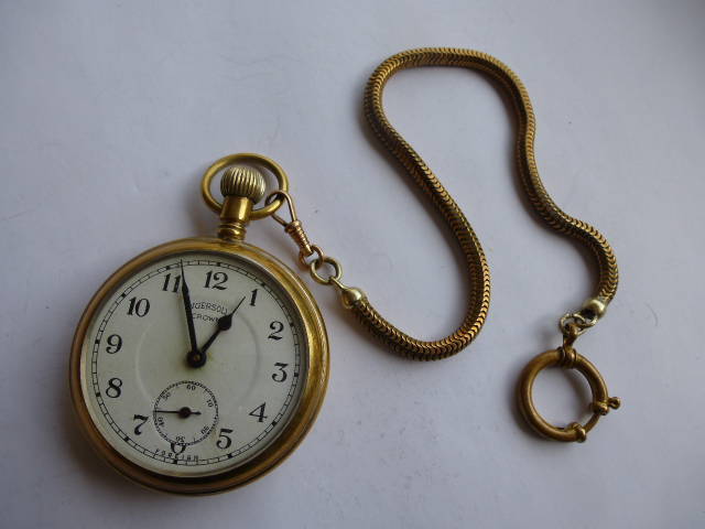 125. Ingersoll crown, brass pocket watch, ca. 1925.